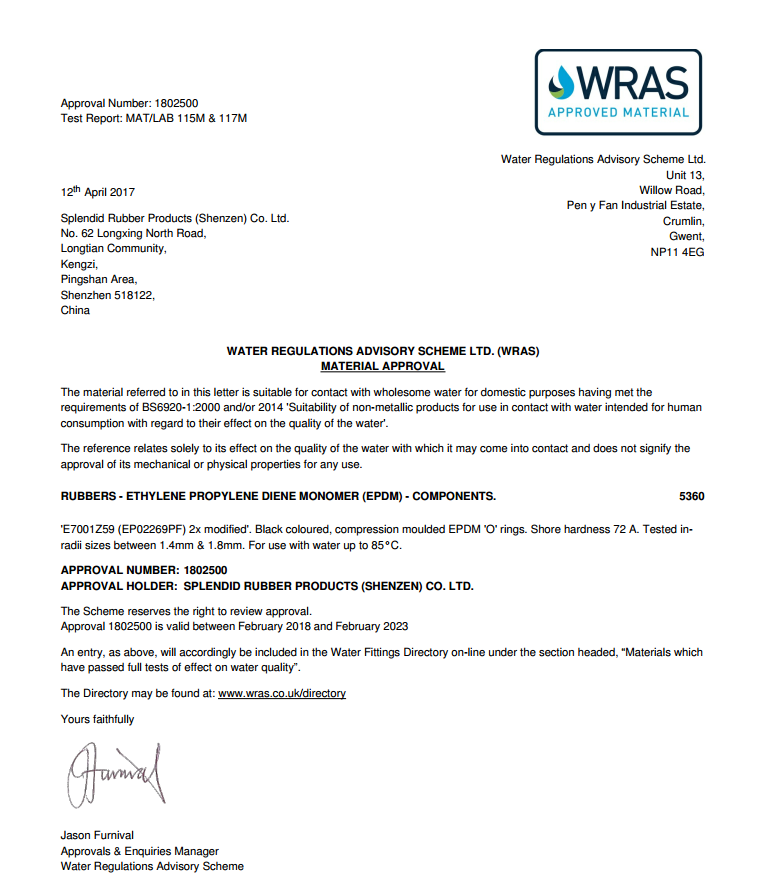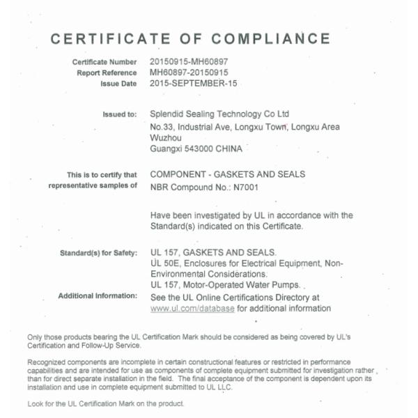 Splendid Rubber Products (Shenzhen) Co., Ltd. is located in Pinshan Town, Longgang District, Shenzhen City, Guangdong Province. Our Investment is 10 million RMB and the factory area is 10,000 square meters. With over 500 employees, our team works hard to maintain the highest standards of quality and serve the needs of our customers. At YuanMao (Splendid), our business philosophy is based on the principles of honesty, service, quality, hard work, fairness and team effort. Our main business focuses on the design, development, manufacture and the related mold development of rubber products. We mainly produce rubber molded parts, O-rings, and other rubber accessories. They are used for sealing valves of oil, air, and water or as the absorbers. We also offer custom molded products, which are manufactured by the samples from our customers. We have been certified by 2002-edition ISO/TS16949 from October 2003, we also got KTW, DVGW, WRAS, and NSF certifications for compound E7001Z59 in 2008. We have an extensive selection of materials available to meet ASTM, JIS, DIN, NSF, and other specifications. All of our products are backed by our ISO/TS16949 registered systems. Splendid meets TS16949 standards. Supporting documentation, PPAP control plans and FMEA are available upon request. We take quality very seriously; and that's our guarantee. ur compound N7001 is UL listed material --JML U2 We have cooperated with Trelleborg, Eriks, Parco, Mcmaster, Prosel etc. For many years, our turnover is over US$ 21million.
